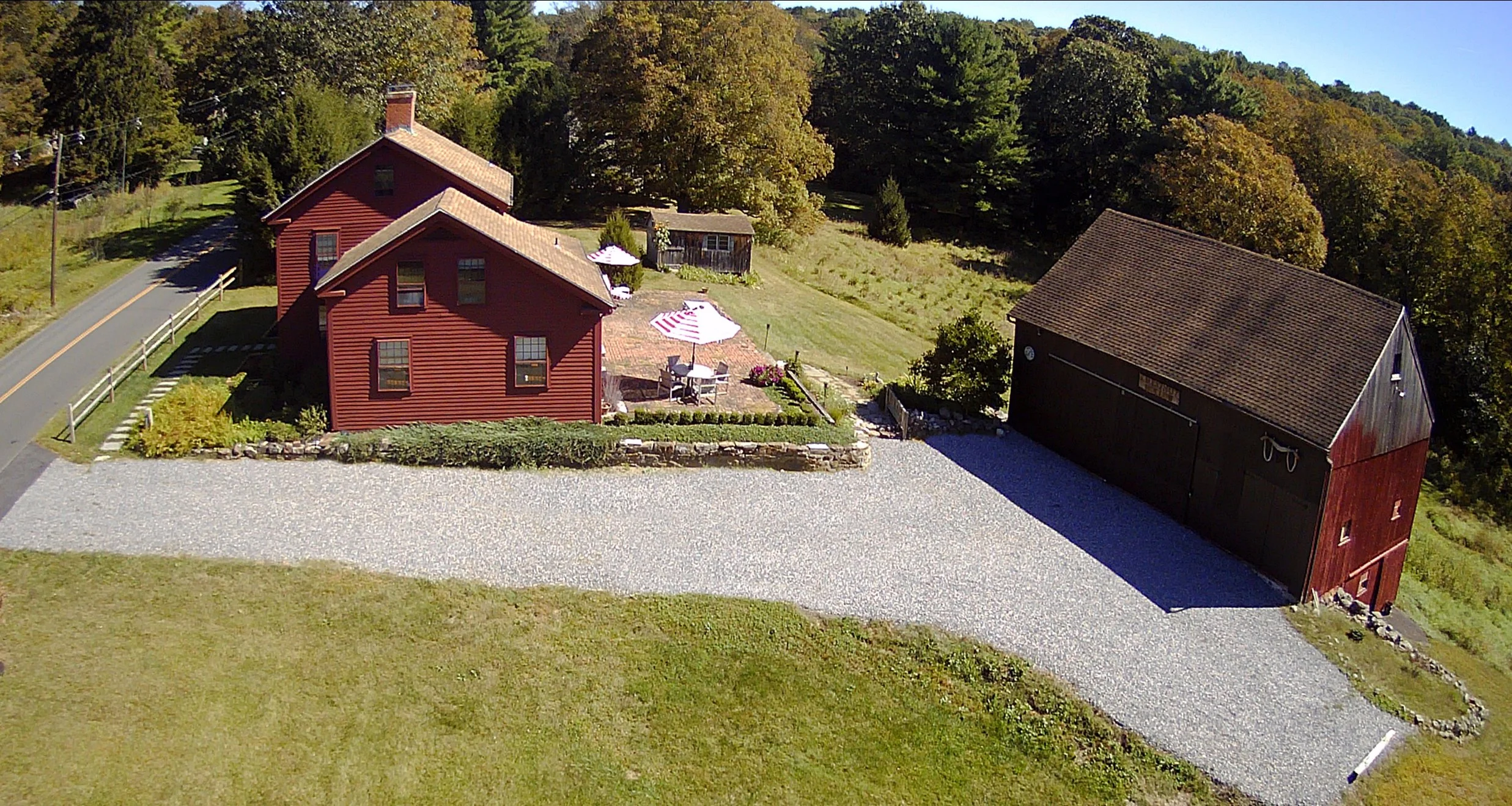 The 1,200 square foot barn adds classic rustic appeal, complete with lower-level stalls, running water, and dramatic timber framing — perfect for holiday markets, rustic celebrations, barn dances, or heartfelt reveal scenes. A charming 150 square foot shed with electricity offers additional versatility for prop use or smaller setups.