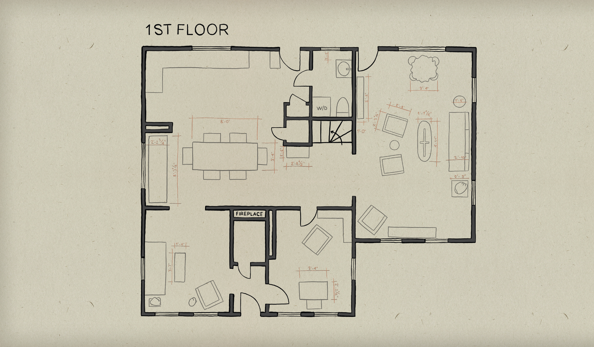The home’s original character - reclaimed wide plank floors, exposed hand-hewn beams, and classic fireplaces - is beautifully complemented by thoughtful updates. The renovated kitchen’s stenciled floor is inspired by late 18th century floorcloths which were an affordable decorative alternative to costly woven rugs or parquet floors. The stenciled floor is carried through the renovated half-bath/laundry room playfully designed with a nod to the artist Basquiat in an artful wallpaper and candy apple red stacked washer/dryer.